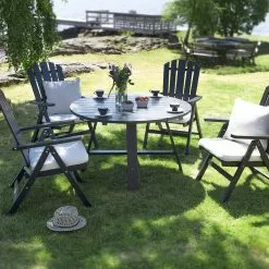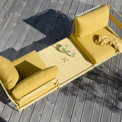 Aluminiumsramme, pulverlakkert (polyester). veving i tetorontau (100% polyester). setepute med avtakbart trekk i olefinstoff (100% polypropylen). kan stables.
