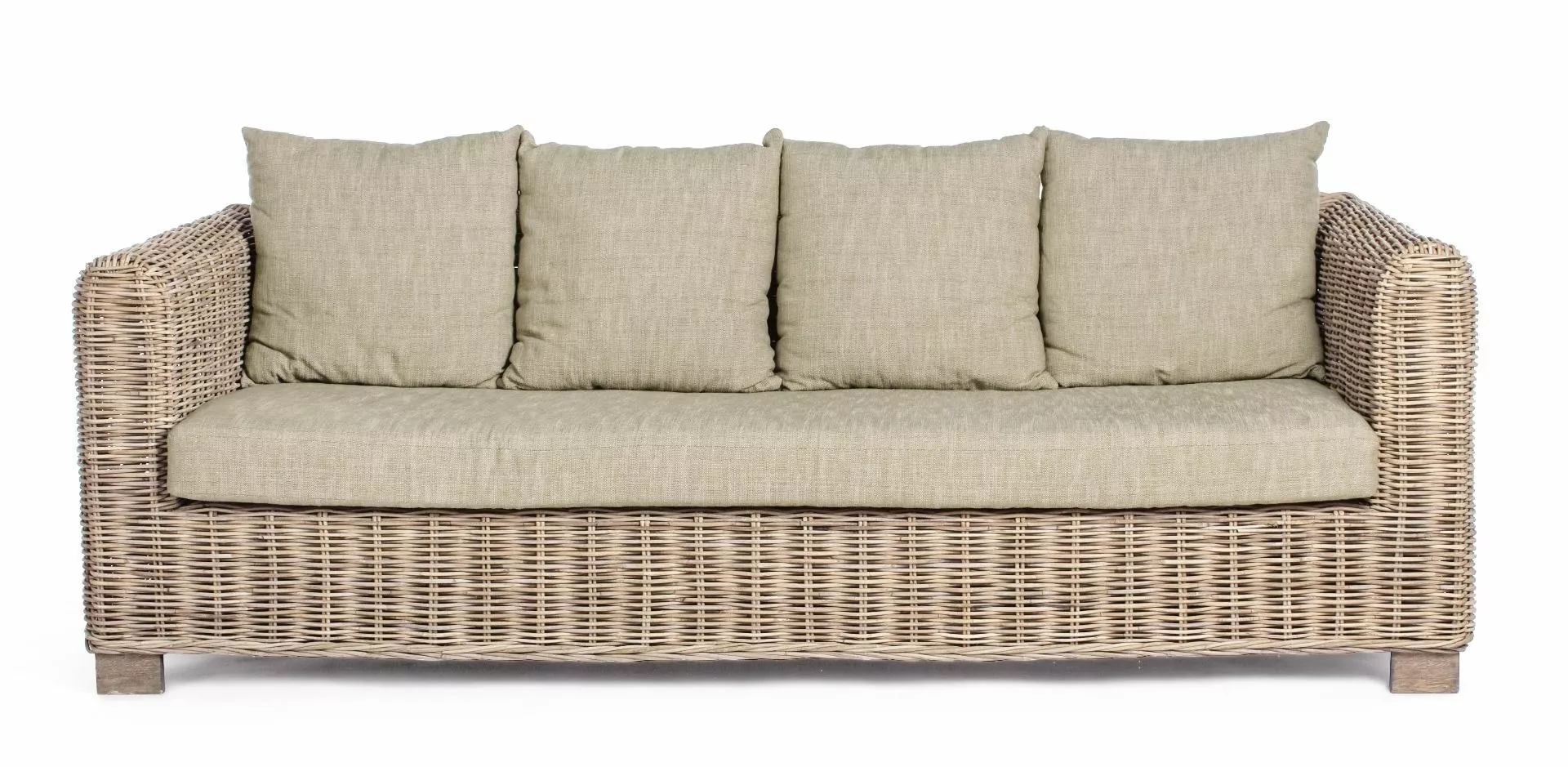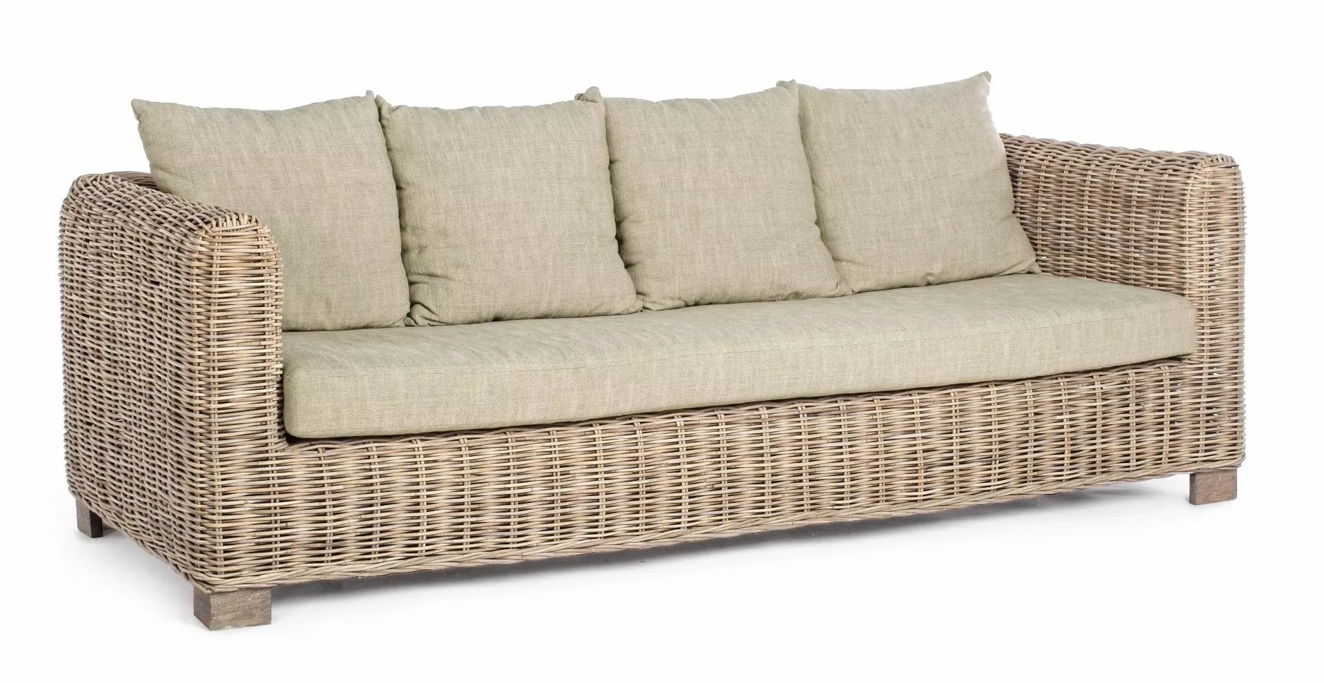 Sittemøbler: Ramme av rotting og mangotre, kubu-veving, naturlig etterbehandling av nitrocellulose. puter med avtakbart trekk for innendørs bruk (55% bomull, 45% polyester). Ikke utsett møblene for direkte sollys og dårlig vær.
