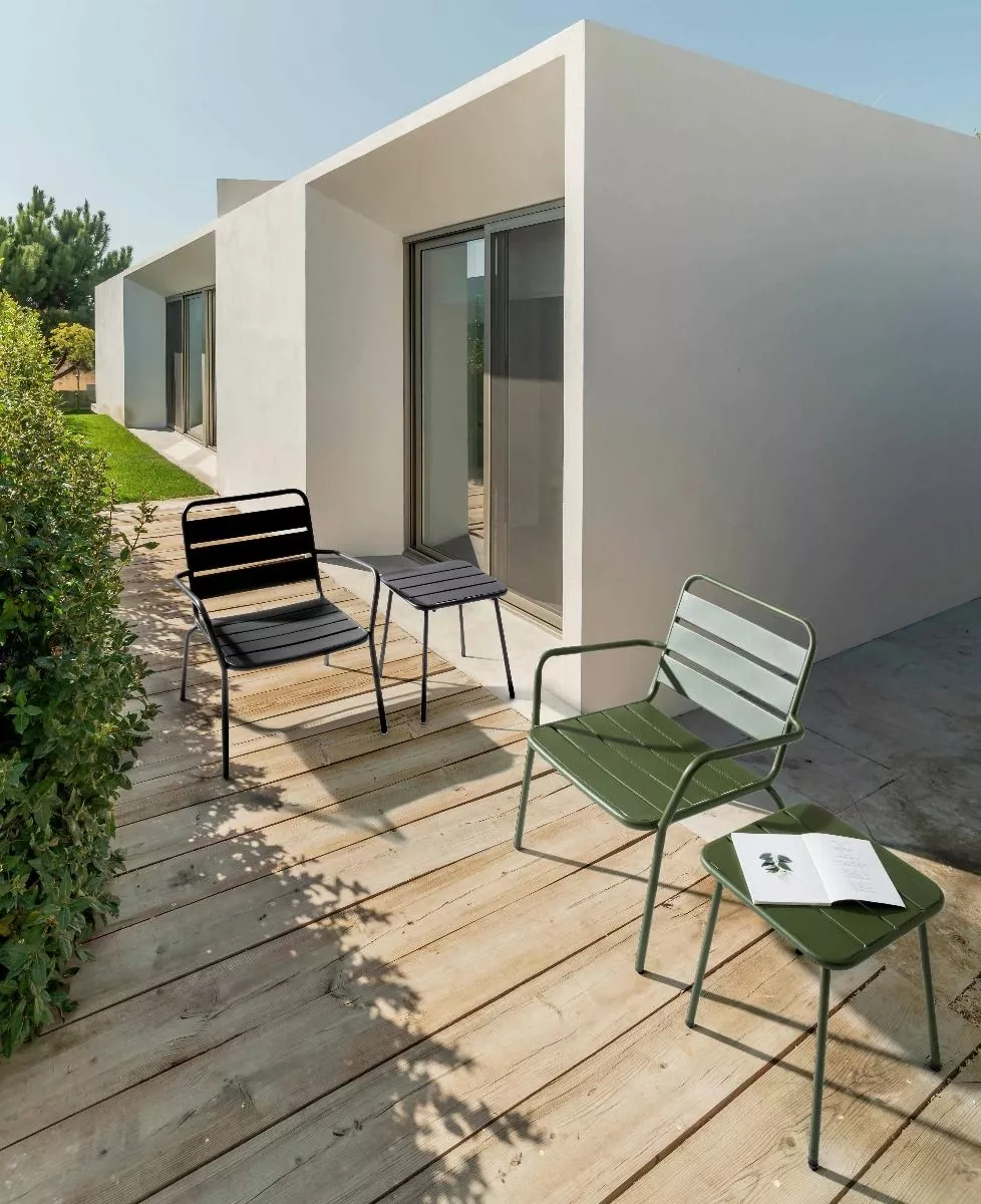 Pulverlakkert (polyester) stål for utendørs bruk (e-belegg) med matt etterbehandling. ben som skal monteres.