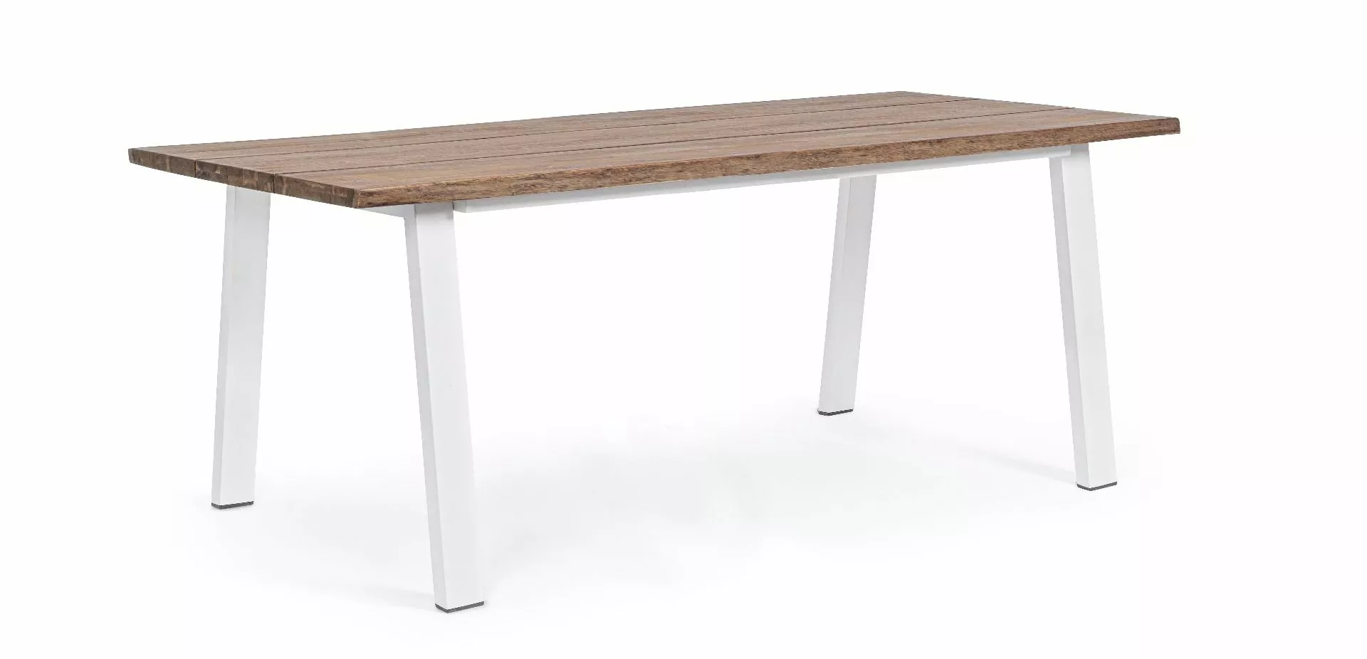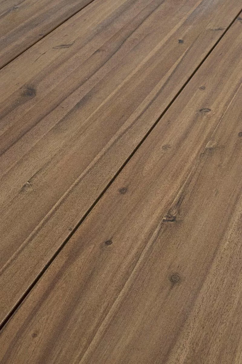 Acacia-tre 100% fsc toppoljebehandling. varmgalvaniserte stålben pulverlakkert (polyester). utvendige lameller i original tømmerhugging. formene og størrelsene på lamellene er bare veiledende, alle bordene vil være forskjellige fra hverandre. galvanisert maskinvare. ben som skal monteres.