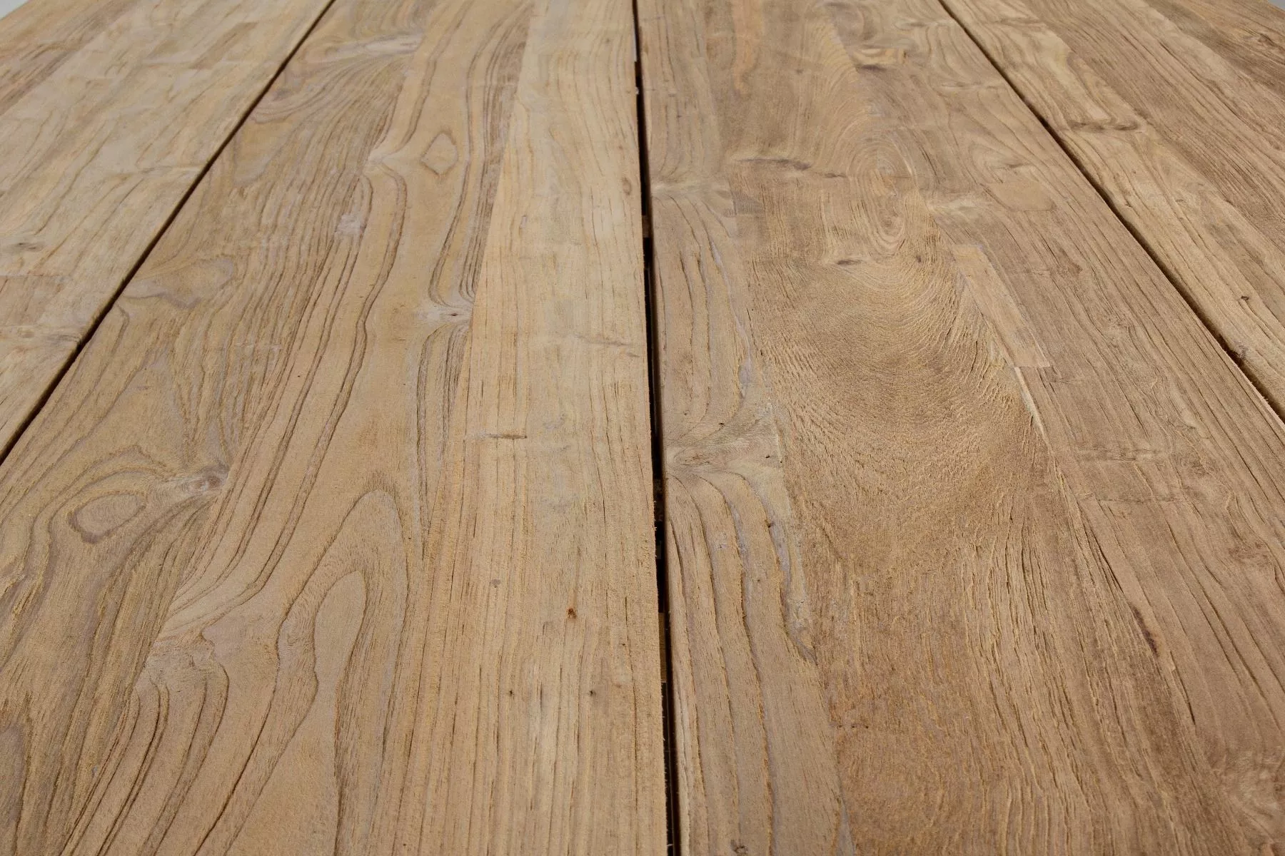 Topp i resirkulert teak. naturlig børstet etterbehandling. aluminiumsben pulverlakkert (polyester). galvaniserte stålskruer. justerbare føtter. gjenvunnet trevare er preget av tilstedeværelsen av treplugger av forskjellige arter og farger. noen splittelser, sprekker eller ufullkommenheter, som også kan generere over tid, er trekk ved dette materialet og gjør hvert stykke unikt og originalt. ben som skal monteres.