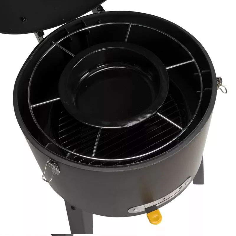 Grillen är lätt att flytta runt tack vare bärhandtagen. De två luftgallren (topp och botten) säkerställer rätt lufttillförsel, så att kolet håller sig vid rätt temperatur. Tack vare den funktionella formen och lätt stängbara locket kan du laga rätter var och när du vill. Perfekt för att grilla på stranden, på campingen eller i parken.