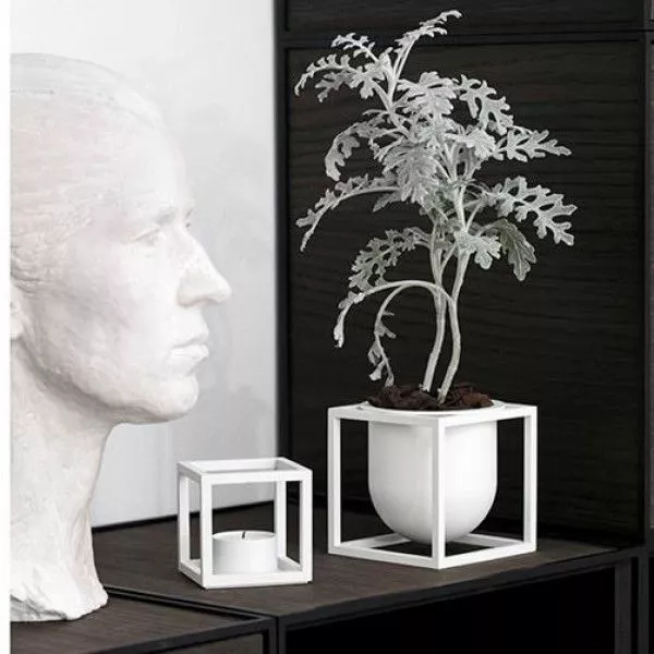Blomkruka, vas eller bara en behållare. Tillämpligheten är outtömlig. En vidareutveckling av Kubus-kollektionen inkluderar nu Kubus Flowerpots, som finns i tre olika storlekar: Flowerpot 10, designad av Søren Lassen och Sarah Abbondio, Flowerpot 14 och Flowerpot 23, designad av Søren Lassen. Behållaren är djupare än den klassiska, Cube Bowl, och är därför extremt lämplig för förvaring av alla arter: som namnet antyder var den ursprungligen avsedd för växter och blommor, men med sin geometriska form tar den plats så elegant som ett stativ ensam designobjekt. Kubblomkrukor finns i de två karakteristiska pulverlackerade färgerna, svart och vitt, vilket gör dem estetiskt tilltalande i alla design- och stilmedvetna hem. Placera den på bordet, på fönsterbrädan, på trädgårdsbordet, på terrassen eller häng den på väggen med de nya, universella konsolerna, som ger Kubus Flowerpot ett lätt, luftigt och extremt modernt utseende. Liksom de andra behållarna i Kubus-kollektionen kommer den här också med en insats där det rekommenderas att plantera.