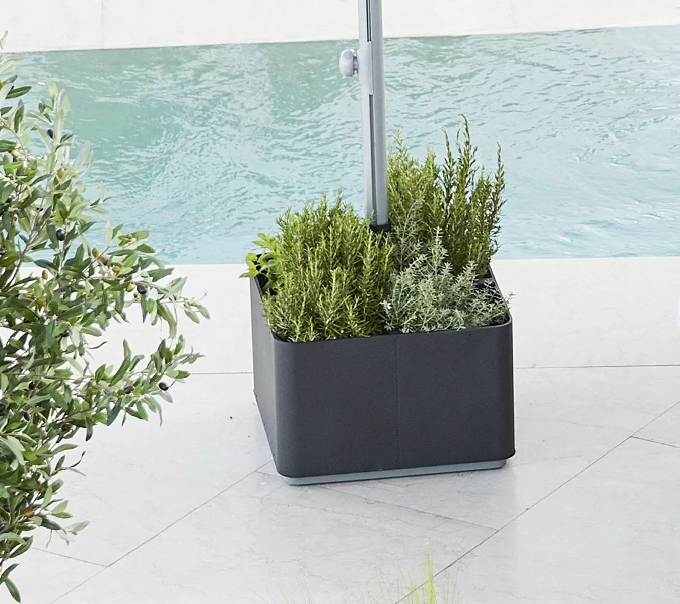 Grow parasolbas är en del av Grow-serien, som består av funktionella och moderna växtlådor, utformade för att komplettera utomhusutrymmet. Odla parasollbas är parasollbas och växtlåda i ett. Med Grow parasolbas kan du skapa en fin finish på ditt utomhusutrymme och plantera dina favoritblommor eller örter runt parasollet. Med Grow får du en väderbeständig växtlåda som är skapad för livet utomhus, i slitstark och hållbar pulverlackerad aluminium. Odla parasollbotten har hjul så att den lätt kan flyttas runt terrassen.