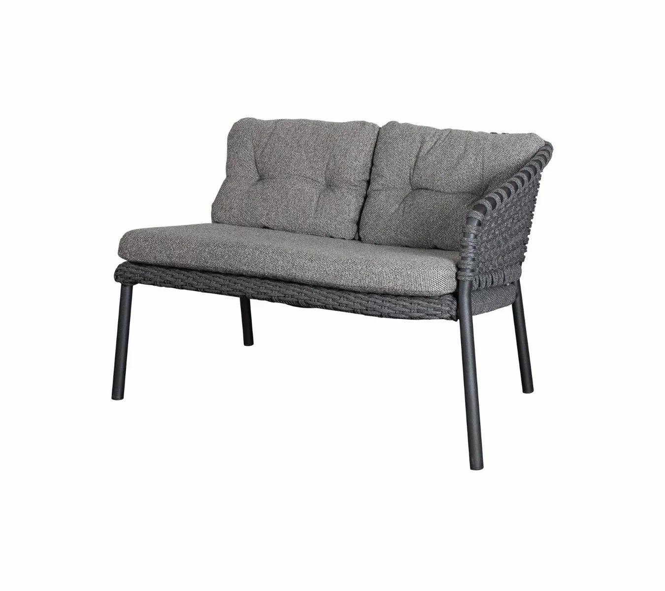 Ocean soffmodul, till vänster, är designad av Cane-line designteam och är en fantastisk kombination av modern design och traditionellt hantverk. Ocean soffmodul är ett flexibelt loungekoncept som kan sättas ihop och justeras efter önskemål och behov. Det elegant designade loungekonceptet är tillverkat av det solida Cane-line Soft Rope på en solid aluminiumbas och med otroligt mjuka och bekväma kuddar i Cane-line Natté eller Cane-line Wove. Basen och det genomskinliga uttrycket ger ett mycket lätt utseende. Modulerna är otroligt enkla att flytta om du vill ha en ny layout på loungen.