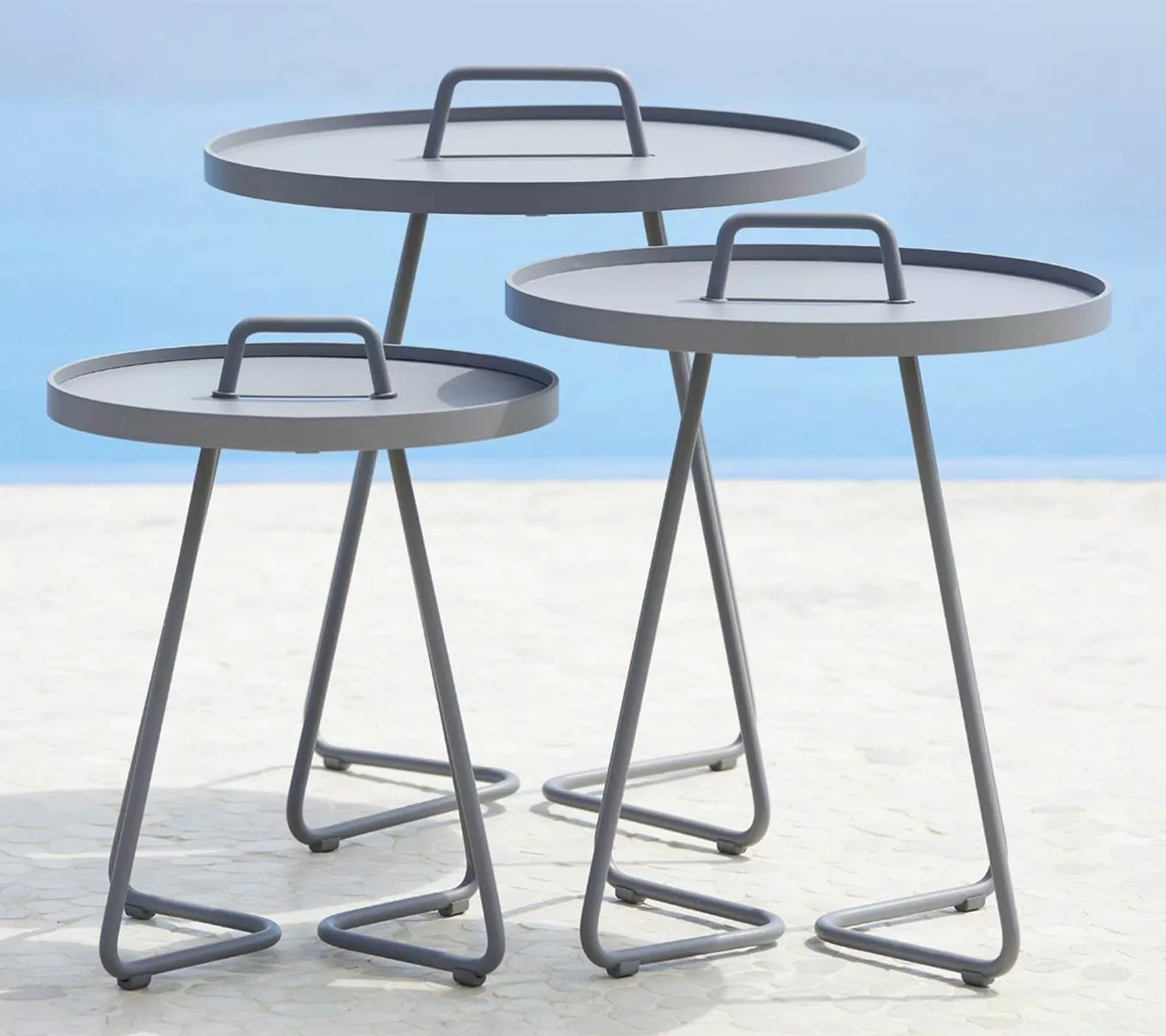 On-the-Move är ett trendigt, lätt och elegant sidobord. Handtaget på bordet, som är en integrerad del av designen, gör det enkelt att flytta runt. Den rörliga lådan kan förvandla bordet från ett designbord till en praktisk serveringsbricka på kort tid. Tillverkad av aluminium och är det perfekta tillbehöret för utomhus- och inomhusbruk. Designad av STRAND + HVASS.