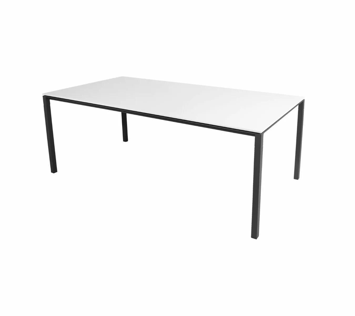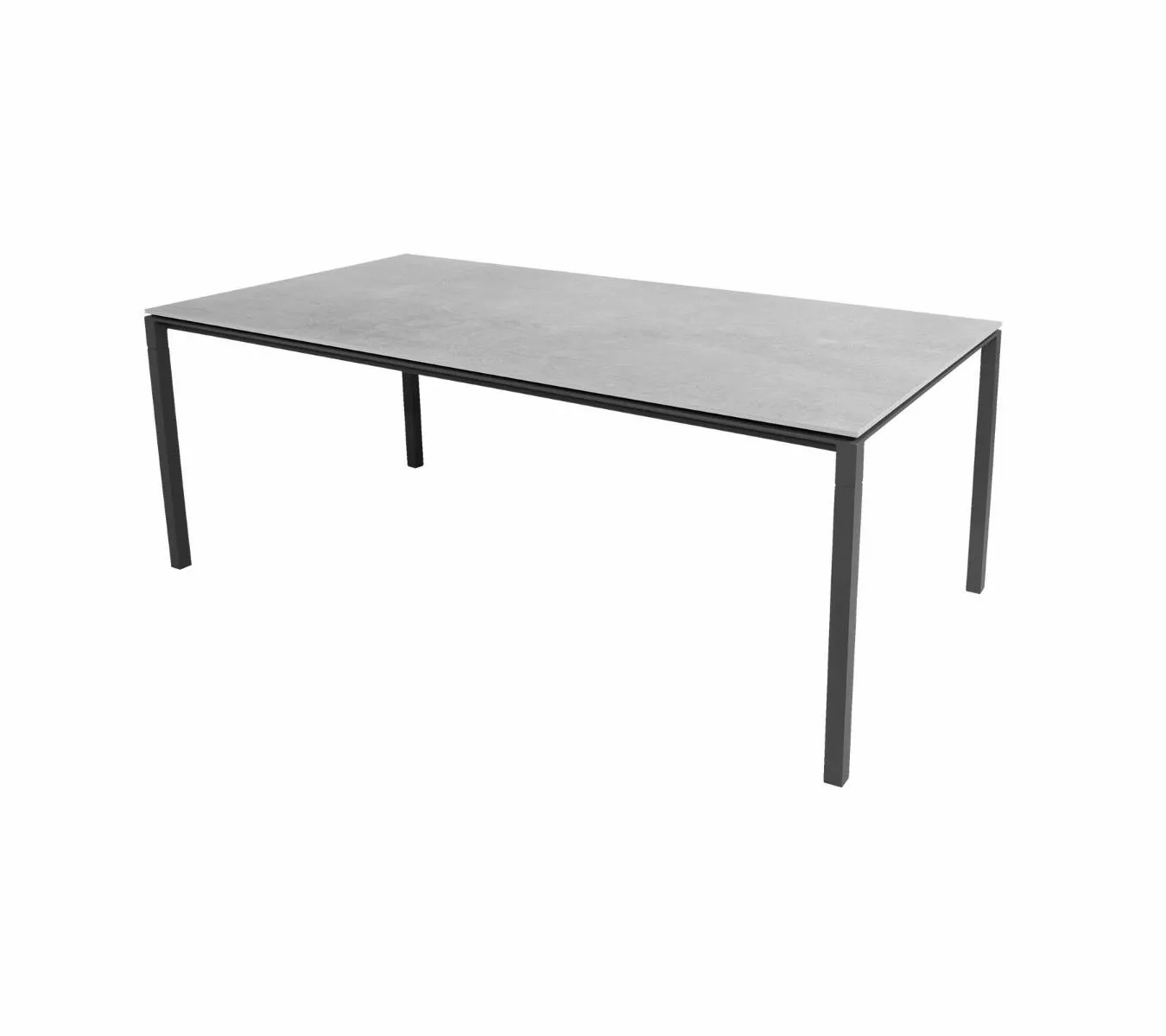 Det minimalistiska bordet Pure är designat av den danska designerduon Foersom & Hiort-Lorenzen MDD. Bordsskivan / plattorna är gjorda av keramik, och den enkla, ramade ramen erbjuds i pulverlackerad aluminium. En 100% naturlig produkt, bordsskivan finns i betonggrå keramik, eller som kakelversion i keramikgrå. Kombinationen ger en lätt, nästan flytande design. Det rena bordet är lättskött, reptåligt och kan torkas av med en fuktig trasa. Bordet är också UV-beständigt, vilket innebär att det kan stå ute i alla typer av väder.