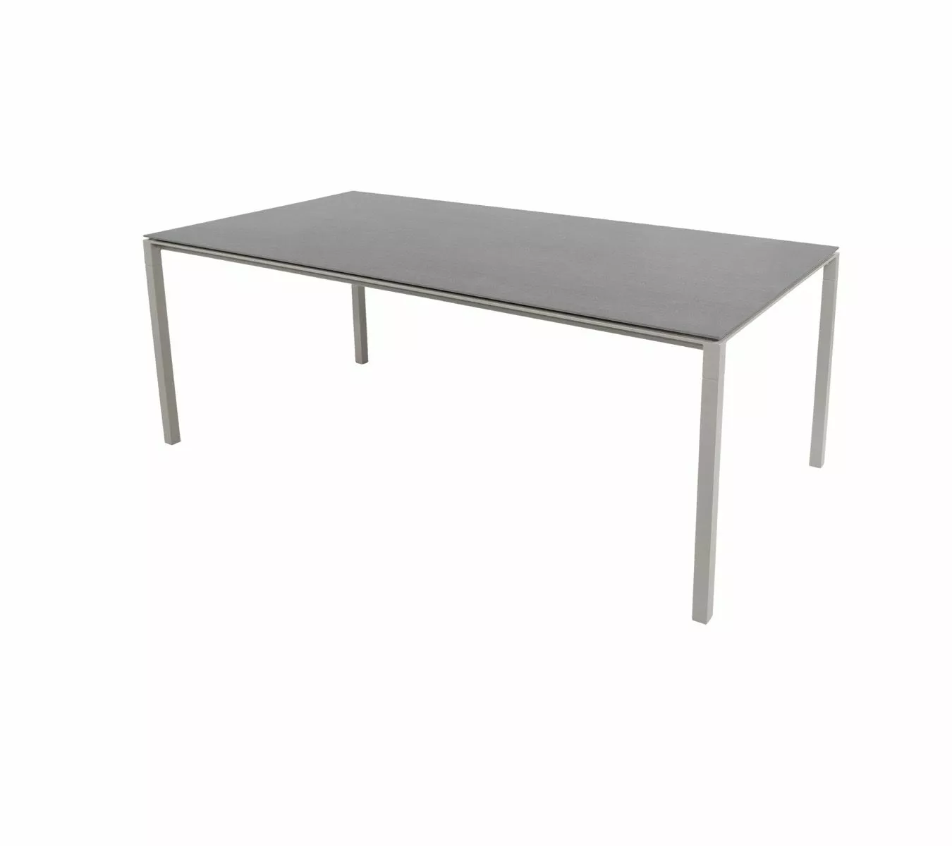 Det minimalistiska och moderna bordet Pure är designat av Foersom & Hiort-Lorenzen MDD. Chassit är tillverkat av högkvalitativt aluminium. Det finns bordsskivor i flera varianter. Pure-bordet är lättskött, reptåligt och kan torkas av med en fuktig trasa. Bordet är även UV-beständigt, så det kan stå utomhus i alla väder.