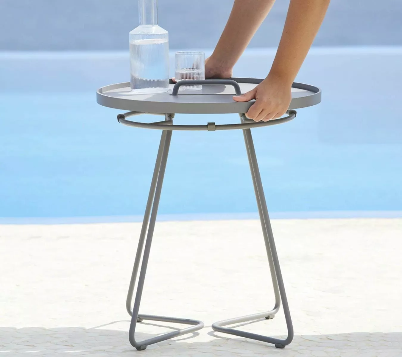 On-the-Move är ett trendigt, lätt och elegant sidobord. Handtaget på bordet, som är en integrerad del av designen, gör det enkelt att flytta runt. Den rörliga lådan kan förvandla bordet från ett designbord till en praktisk serveringsbricka på kort tid. Tillverkad av aluminium och är det perfekta tillbehöret för utomhus- och inomhusbruk. Designad av STRAND + HVASS.