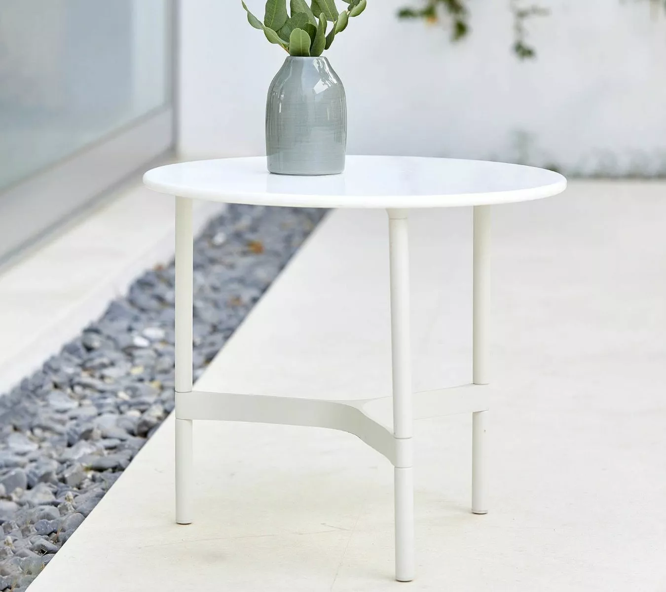 Twist är ett elegant, dekorativt och praktiskt soffbord / sidobord för utomhusmiljön. Duon bakom designen är byKATO, känd för sin moderna och detaljerade design och hantverk av hög kvalitet. Twist-bordet är det perfekta tillskottet till loungemiljön utomhus eller som ett litet sidobord för din favoritplats i trädgården. Twist är gjord av en lätt ram i vitt pulverlackerat aluminium och en bordsskiva i det slitstarka materialet Solid Surface. Bordsramen är enkel med en vridning för att lägga till en extra dimension till en annars enkel skänk. När hösten kommer kan Twist-bordet enkelt flyttas inomhus för att matcha det inre av hemmet.