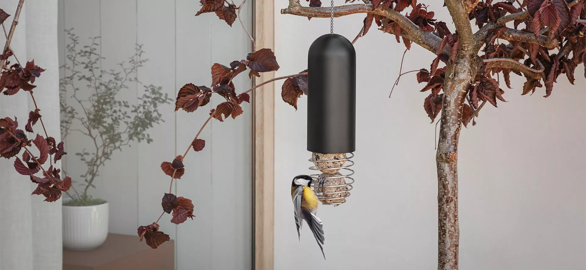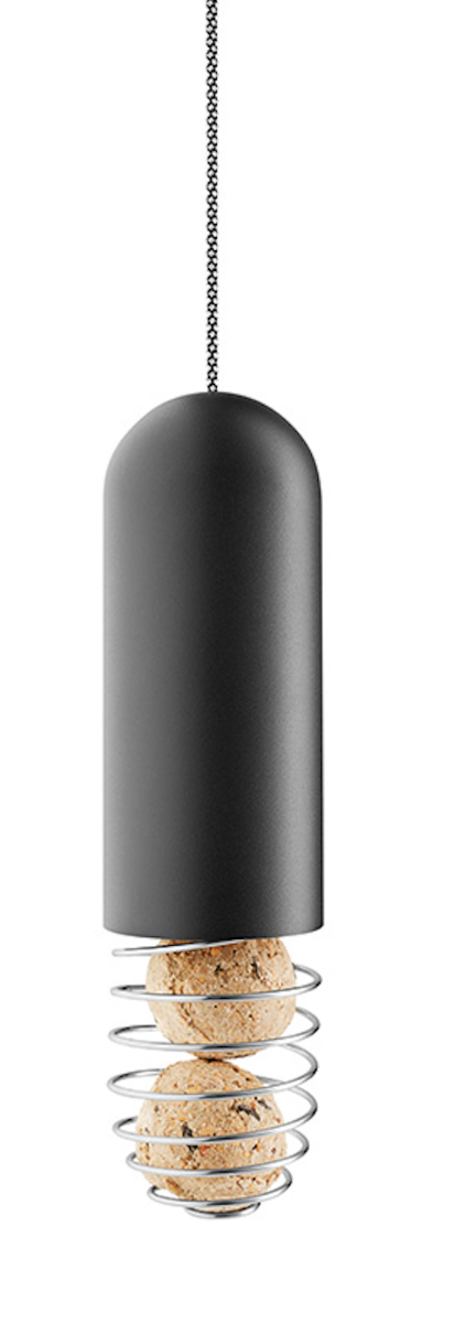 By småfuglene på noe godt i form av meiseboller eller fettboller, og server det i hengende holdere. Fuglene har dermed enkel adgang til fôret, og de store fuglene kan ikke fly bort med maten. Meisebolleholderen har plass til tre boller, og det er lett å se når det trengs påfyll. Bare løft den svarte toppen. Praktisk montering med snor i f.eks. et tre eller et utspring utenfor vinduet, slik at du kan følge med på fuglenes aktivitet.