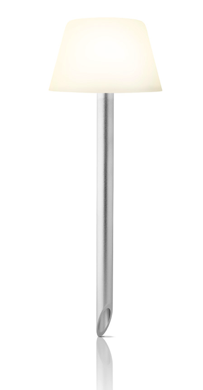 Dekorativt trädgårdsspjut som ger kvällstimmarna i trädgården ett speciellt och stämningsfullt sken. SunLight trädgårdsspjut är lätta att sticka ner var som helst på marken. Placera ett eller flera spjut längs uppfarten, trädgårdsgången eller i en vacker rabatt eller blomkruka. Den energieffektiva lyktstolpen är 100 % soldriven med integrerade och dolda solceller och laddar i solen under dagen. Spjutet är trådlöst och har praktiska funktioner som skymningssensor (lampan tänds automatiskt när det blir mörkt) och en energibesparande, automatisk avstängning efter 6 timmar. Lampan har en brinntid på upp till 20 timmar vid full laddning (8 timmar i solen), uppladdningsbart batteri och LED-lampa. Skärmen kan stängas av och lampan rengöras med en urvriden trasa. Tål att stå ute året runt. Tillverkad av plast och aluminium. Mått: H: 37 x Ø: 13,5 cm.