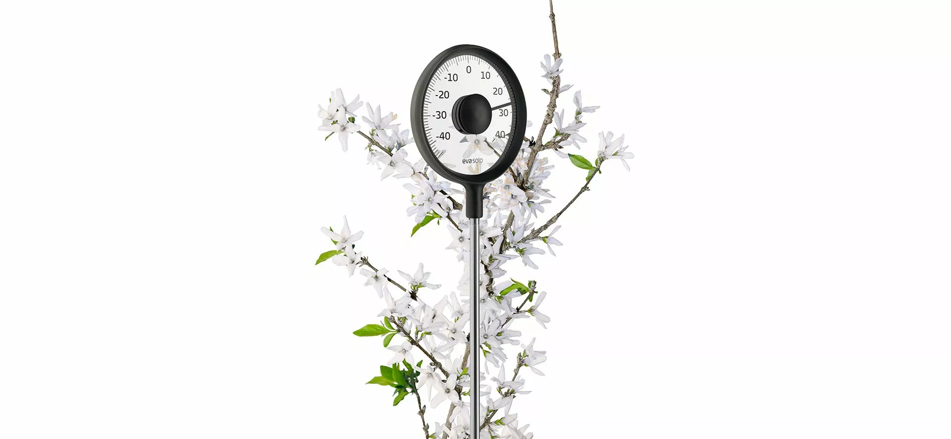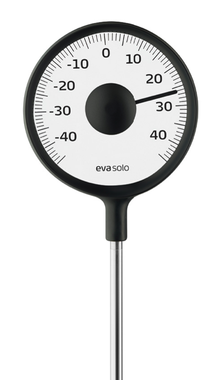 Utetermometer med spjut till trädgården eller blomkrukan på balkongen, så kan du alltid ha överblick över hur varmt det är. Termometern är lätt att läsa av och kan enkelt flyttas till den plats där du vill veta vad temperaturen är. Rengör med en urvriden trasa. Tillverkad av rostfritt stål, plast och gummi. Mått: Ø: 11 x D: 3 cm / Spjut H: 90 cm.