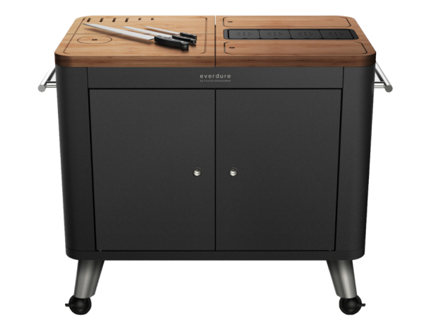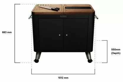 Gjør alle forberedelsene utendørs ved det mobile utekjøkkenet. Det inneholder både skjærebrett og serveringsfat, plass til kniver, oppbevaringsplass til krydder og urter samt et brett til isbiter, hvor du kan holde drikkevarene kjølig.