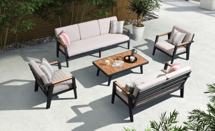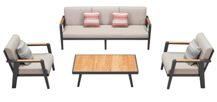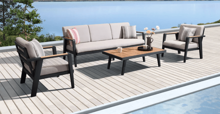 Emoti-serien er konstruert for å tåle vårt nordiske klima, og er laget av slitesterke materialer og en kraftig aluminiumsramme av høy kvalitet. Rammen er pulverlakkert med Akzonobel og teak er FSC-sertifisert. Putene i Olefin-stoff er svært værbestandige og kan vaskes i maskin på 30 grader. Høykvalitets skum gir ekstra komfort og sørger for en lang levetid. Møblene er UV-bestandige, vannavstøtende og fargebestandige. Vi anbefaler likevel å bruke beskyttelsestrekk for putene når det er behov for ekstra beskyttelse mot vær og vind.