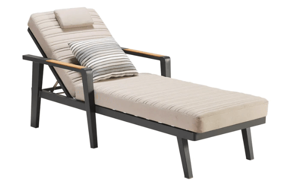 Solseng settet er UV-bestandig, vannavvisende og fargebestandig, men vi anbefaler likevel å beskytte putene med et trekk når det er behov for det. Settet kommer også med et trendy sidebord kalt ZigZag i aluminium, og pynteputer følger med for å fullføre stilen.