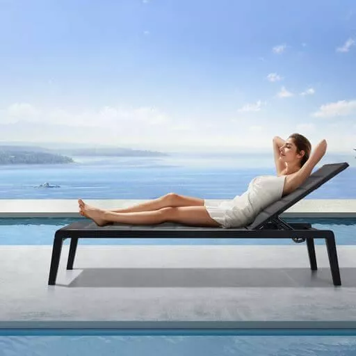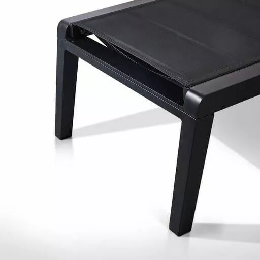 Textilene i Emoti solseng Black edition gir deg en moderne og trendy solseng som også er svært komfortabel takket være justerbar rygg. Solsengen har en sterk aluminiumsramme og dobbel Textilene som er polstret med et tynt lag skum for ekstra komfort. Det er den ideelle solsengen for de som ønsker en vedlikeholdsfri møbelopplevelse, da den er UV-bestandig, vannavstøtende og fargebestandig.