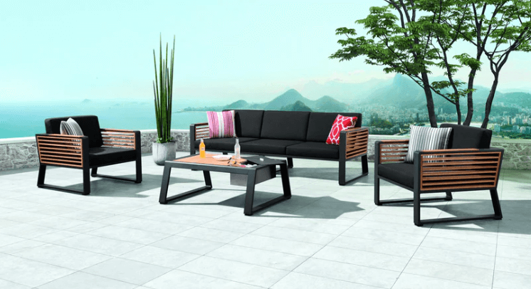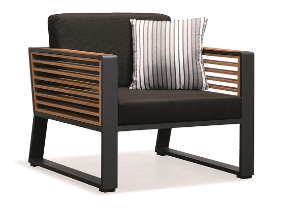 Teakdetaljene i New York-serien er unike, og sidepanelene er håndlaget med teakmaterialer i klasse A, og er FSC-sertifisert. Bordet som følger med, er også en del av møbelsettet, og har en stilig lukedesign med en rustfri stålbeholder som kan brukes til is eller oppbevaring. Lokket på bordet kan tas av eller snus for en jevn overflate.