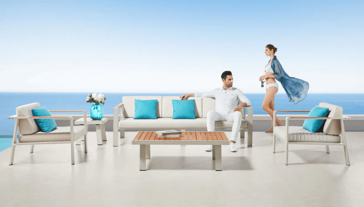 Dette møbelet har stoff/putetrekk som er resistent mot fukt, vann, og flekker/smuss.