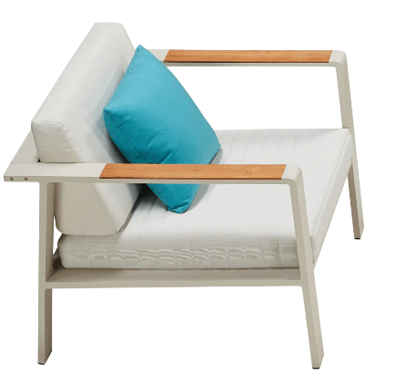 Dette møbel har et stoff som er UV resistent, og som beskytter for skade/bleking fra Ultrafiolett lysstråling. UV resistent betyr ofte at stoffet er fargesatt på et tidlig stadium i produksjonen, og da er til stede i kjernen av stoffet. Gjennomfarget stoff som dermed er svært holdbart mot falming/bleking av solstråling.