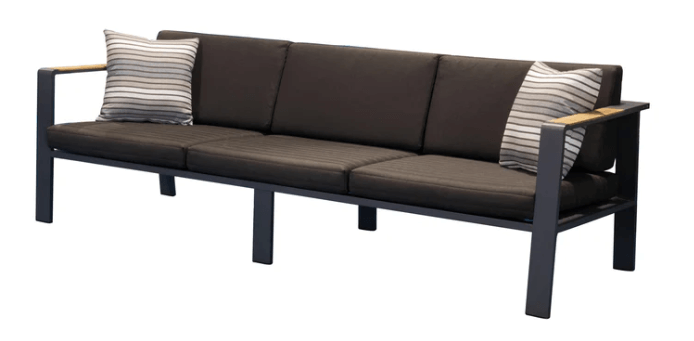 Nofi Hagegruppe 3+2 Black Edition (Antrazit) består av en 3-seters sofa, 2 loungestoler og et salongbord. Det er en stilfull og moderne serie fra Higold som passer perfekt på enhver uteplass. Serien er spesielt konstruert for å tåle vårt nordiske klima med kraftig konstruksjon og slitesterke materialer. Stolene og sofaen er romslige og gir svært god sittekomfort. Konstruksjonen består av en solid aluminiumsramme med høy kvalitet og pulverlakkering fra Akzonobel. I tillegg er det brukt FSC-sertifisert teak for å gi et smakfullt og trendy design. Nofi-serien har puter i Olefin-stoff som er svært værbestandig og kan vaskes i maskin på 30 grader. Det er angitt anvisninger på innsiden av putetrekkene. Høykvalitets skum gir meget god sittekomfort og trygghet for lang levetid. Putene er også UV-bestandige, vannavvisende og fargebestandige.