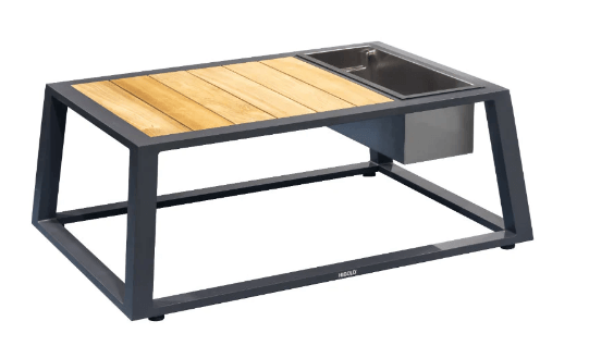 Bordet som følger med er et møbel i seg selv og har en stilfull stålbeholder i rustfritt edelstål for is eller oppbevaring. Den kan enkelt løftes ut for å fylles med is på varme sommerdager. Pynteputer følger også med.