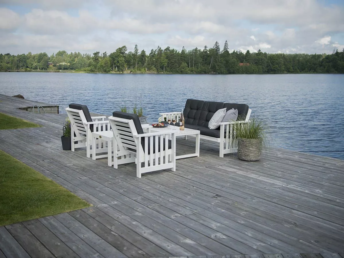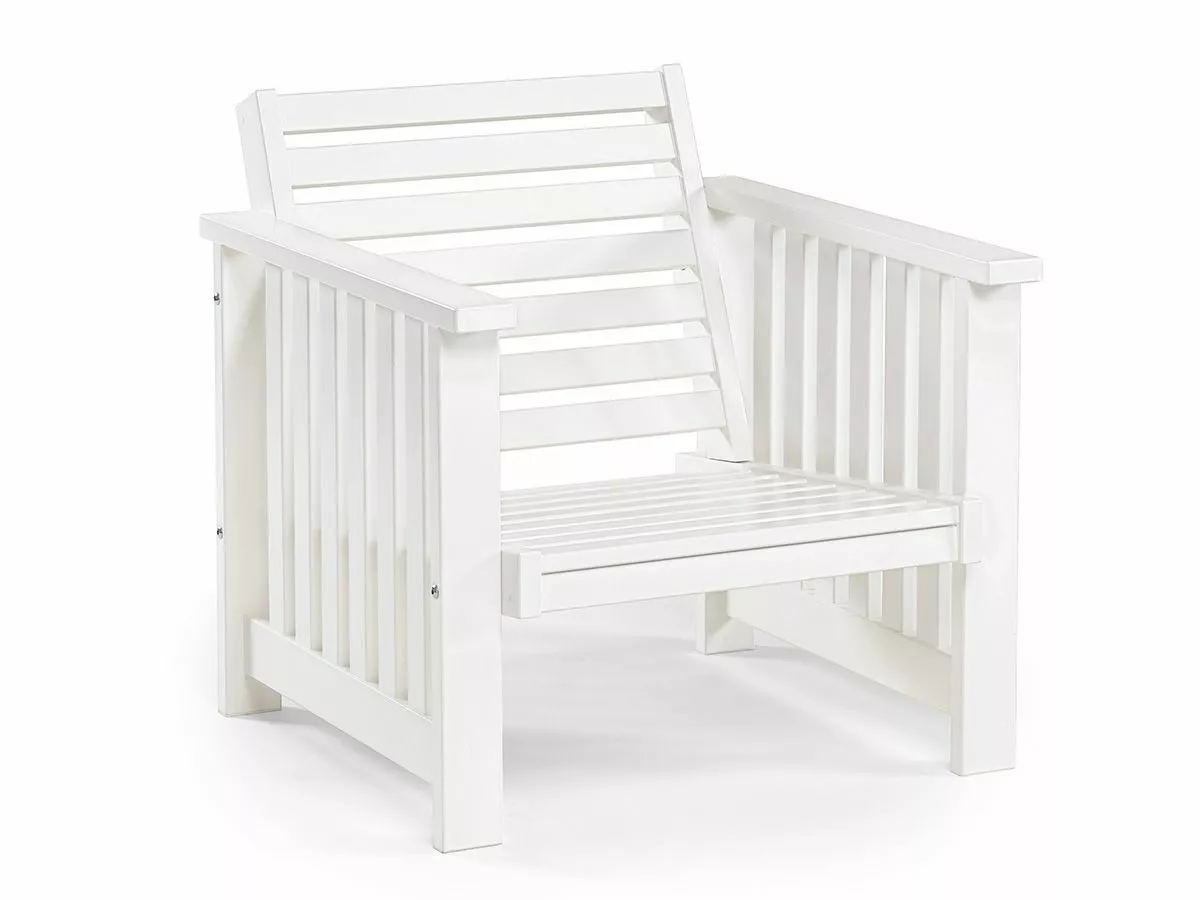 En virkelig stilig lenestol med retroinspirert design, men med moderne designelementer. Lenestolen er laget av hvitlakkert kjerneved fra Norrland som er sertifisert av FSC®.
