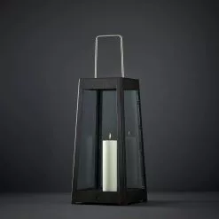 Stilig og miljøvennlig belysning med LED-lys og solcelle i skandinavisk design. Lykten lades opp ved hjelp av solcelle eller USB. Kan justeres i lysstyrke til 30, 50 eller 100%. Laget av aluminium. Farge: kullsort.
