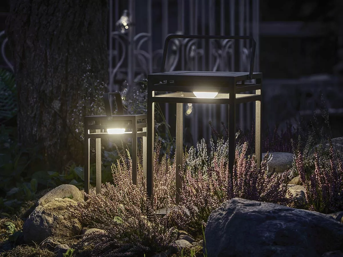 Stilig og miljøvennlig belysning med LED-lampe og solceller i skandinavisk design. Lampen lades opp via solceller eller USB. Kan dimmes til 30, 50 eller 100%. Laget av aluminium. Farge: kullgrå.