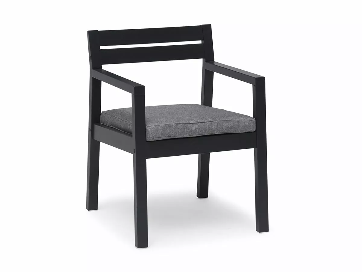 En stilfull spisestol som kjennetegnes av sine rette linjer og moderne design. Den er laget av FSC®-merket kjernefuru i fargen orkangrå. Gråmelert pute er inkludert!