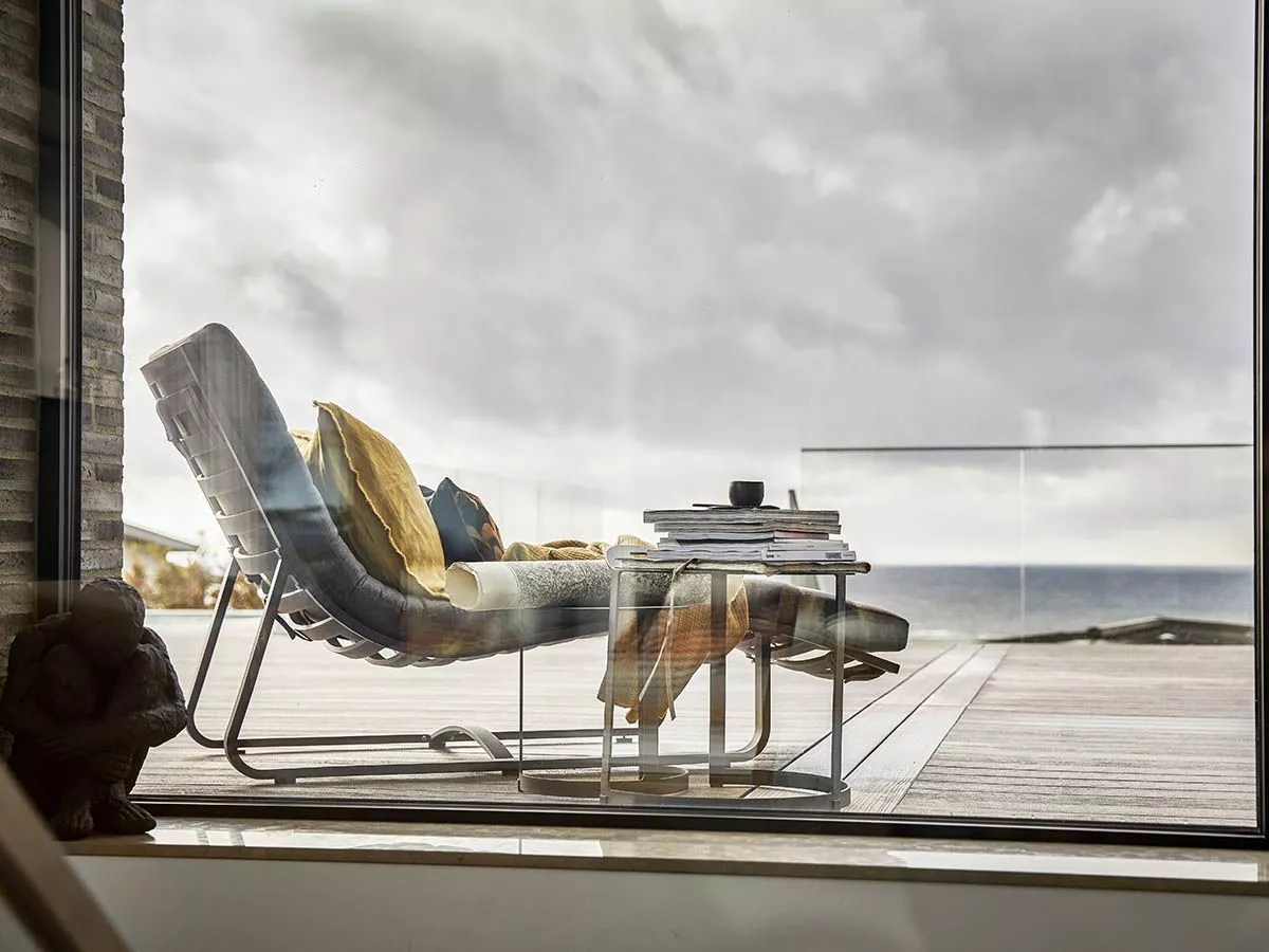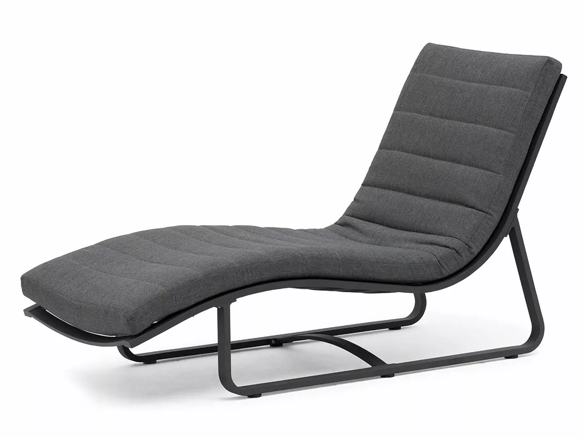 En komfortabel avslapningsstol med organisk form. Møbelet utstråler stilren skandinavisk design. Laget av aluminium. Farge: charcoal. Lysegrå pute i olefin med quickdry foam i sitteputen. Quickdry er et unikt fyllmateriale med rask tørkeevne og god sittekomfort. Det er pustende, har åpen cellestruktur og er værbestandig og fungerer derfor optimalt for utemøbler.