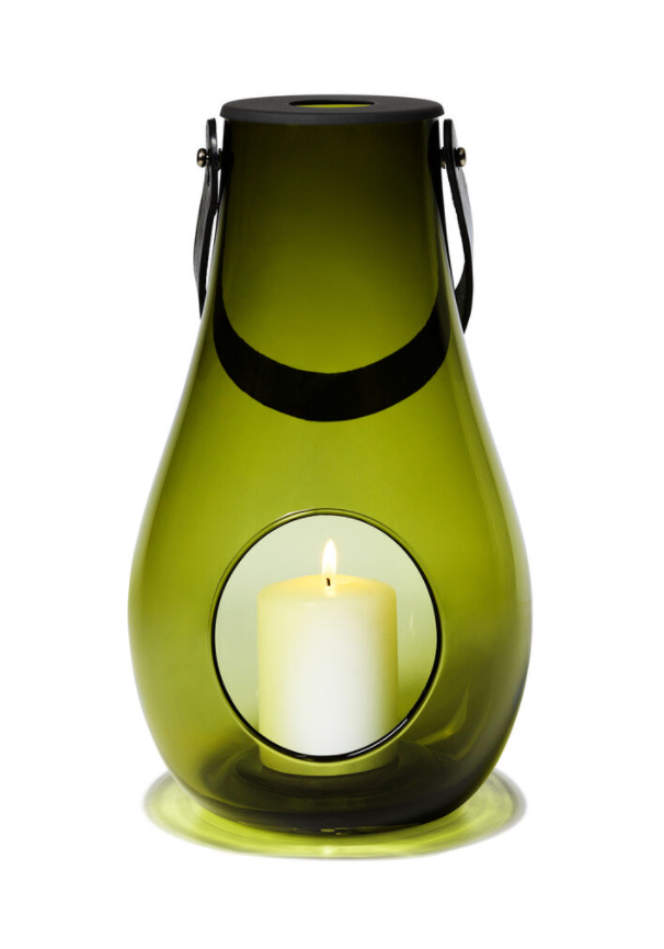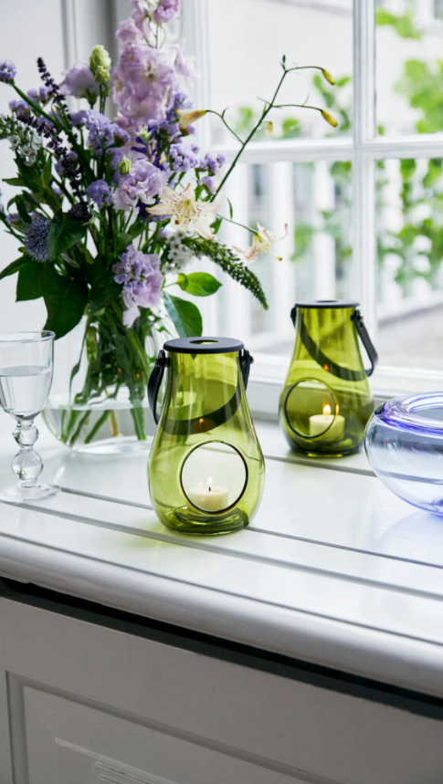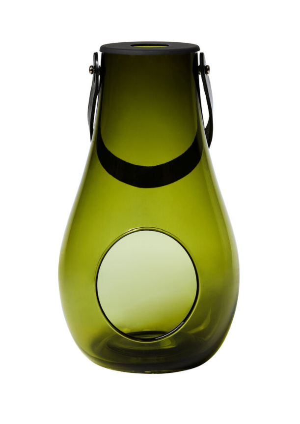Lyktan Design With Light kan användas året runt, både ute och inne.Lyktan är perfekt för sommarkvällar på terrassen, som dekoration på golvet, på bordet, i trappan eller i fönstret. Den olivgröna färgen är klassisk och dämpad och skapar en elegant och naturlig look inifrån och ut. När ljuset reflekteras i det olivgröna glaset får det ett varmt och behagligt sken och man kan se designern Maria Berntsens talang för att fånga och reflektera ljus i hennes design. Varje lykta är helt unik, då glaset är munblåst. Denna lykta finns i varianterna 16,5 cm, 25 cm och 29 cm.