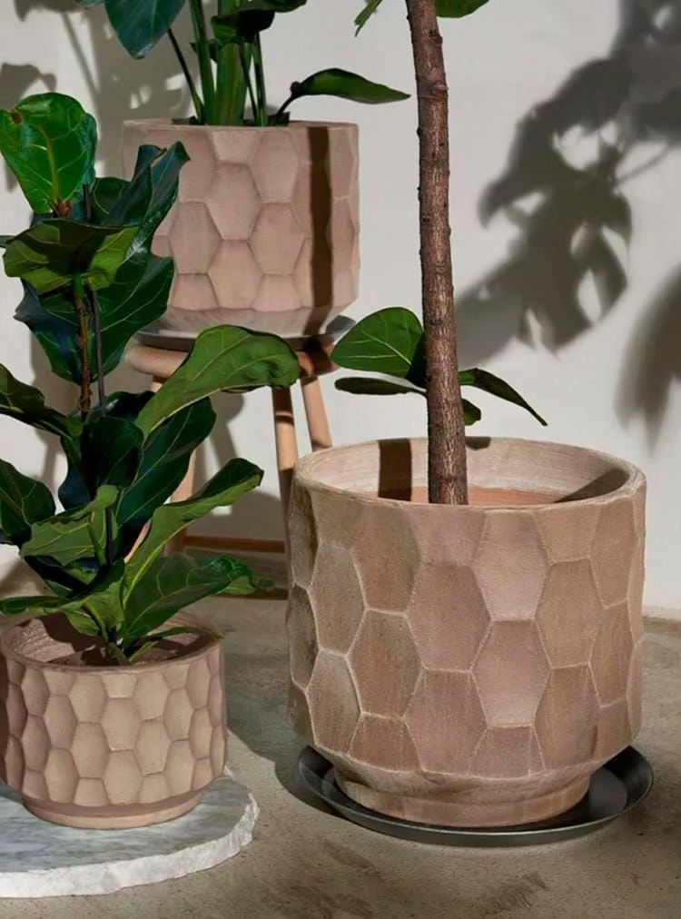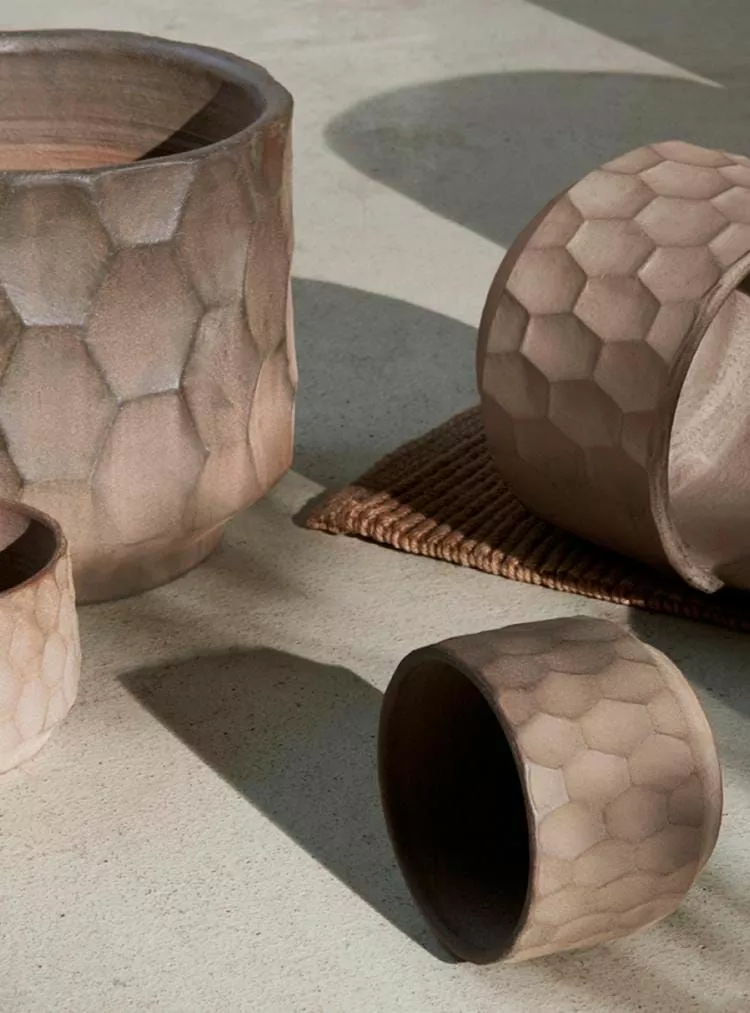 Med Gro-serien introducerar Kähler interiörer till utomhusområden. Den rustika örtskruven har en unik yta med tydliga sexkantiga strukturer som har hämtat inspiration från växternas värld. Tack vare en mycket speciell förbränningsprocess där trä används är inga två örtburkar lika, vilket gör Gro till en mycket speciell visuell upplevelse. Fyll den fina örtkrukan med örter och placera den på terrassen eller balkongen – eller innerdörrar i köket. Blomkrukans concealer är designad av den kända danska keramikern Christian Bruun. Mått Ø26,5 cm. Finns även i Ø16,5 cm och Ø21,5 cm.