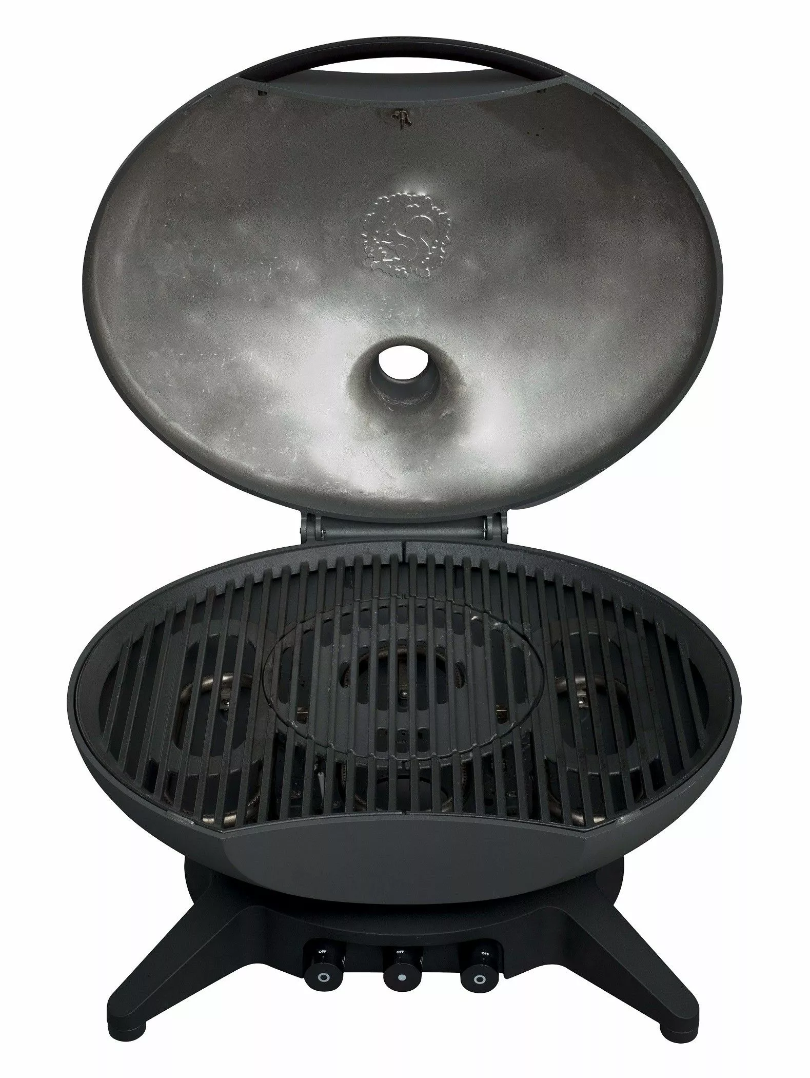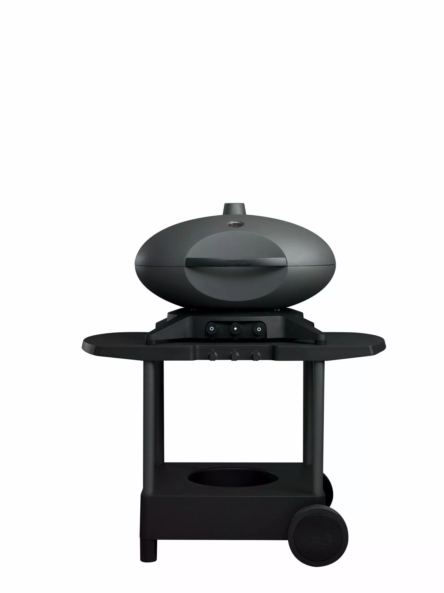 Det minimalistiske grepet fullender formens front, både designmessig og ergonomisk. Samtidig gir det firebente understellet grillen et stabilt fundament, som helt naturlig og diskret danner rom for både betjeningspanel og gasstilslutningen.