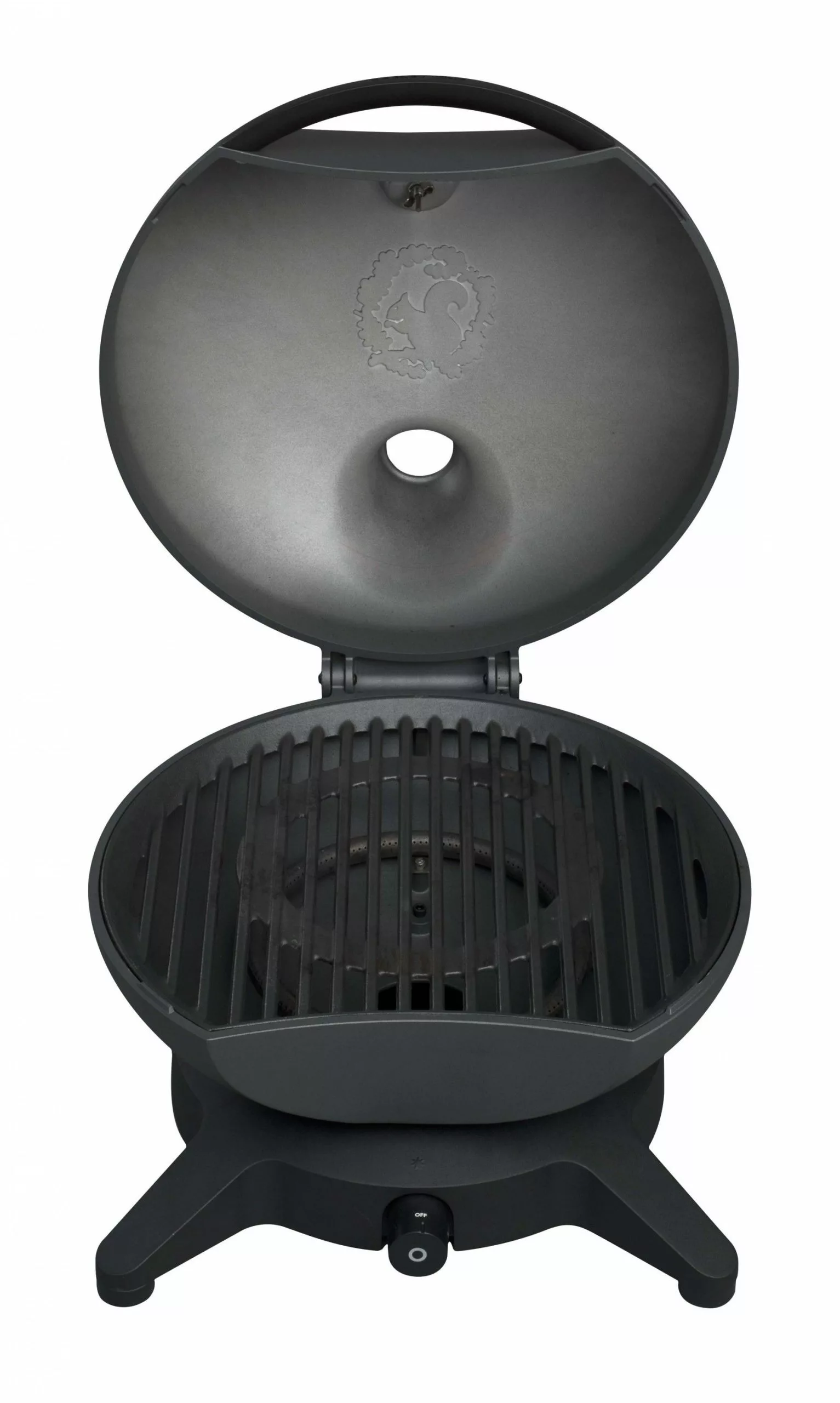 Et integrert termometer og det høye kuppellokket gjør at denne gassgrillen også passer perfekt til å tilberede f.eks. en stek.