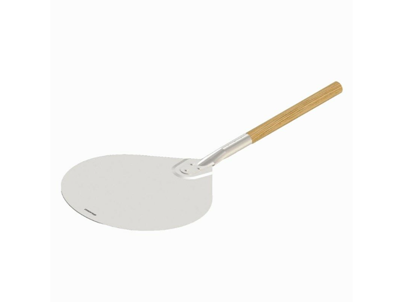 Pizzaspaden är gjord av droppformad aluminium och med ett oljat ekskaft.