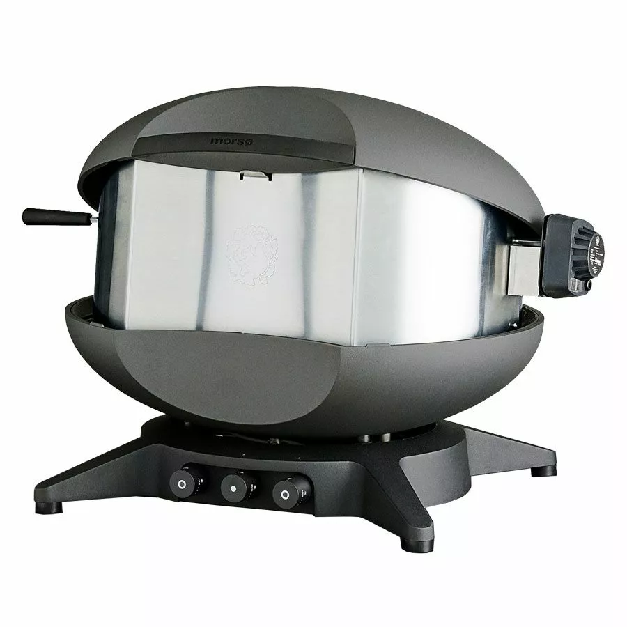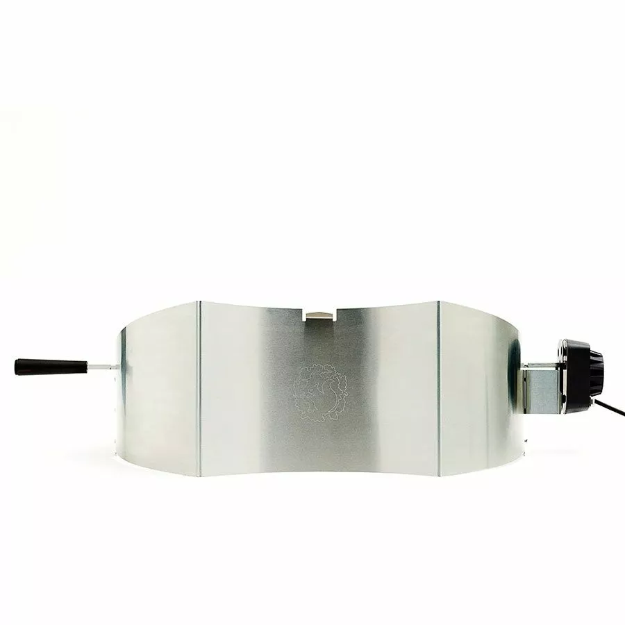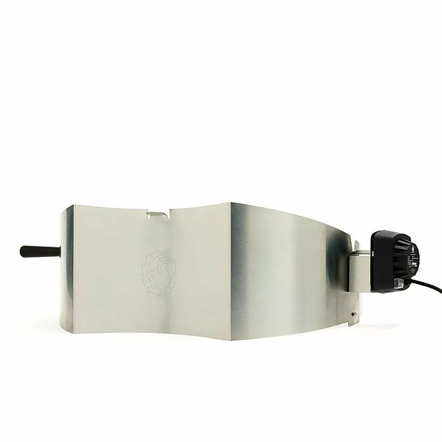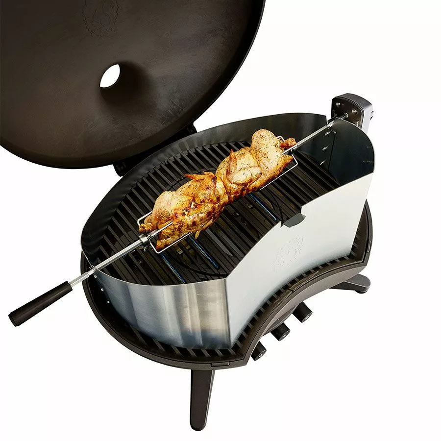 Ett rotisserie för en grill är vanligtvis endast avsett som en funktionstillägg. Men inte på Morsø … Roteryerna för Morsøs populära Morsø Forno Gas Grande och Medio är funktionellt utformade som ett komplement till grillens ursprungliga karakteristiska och enkla design. Det har varit ett oundvikligt krav för Morsø och designern Klaus Rath att behålla den övergripande designprofilen och samtidigt säkerställa bästa möjliga kvalitet och funktionalitet. Den vackert böjda skärmen i rostfritt stål kilar sig elegant under grillens lock och skapar därmed gott om utrymme för att rotera även stora mängder, precis som det finns utrymme för att placera en saftuppsamlare mellan den roterande och grillkroppen. Med en smidig rotation uppnår du därför enkelt och enkelt en vacker, utsökt och enhetlig grillad produkt. Rotisseriet är enkelt att rengöra och alla ståldelar kan diskas i diskmaskin.