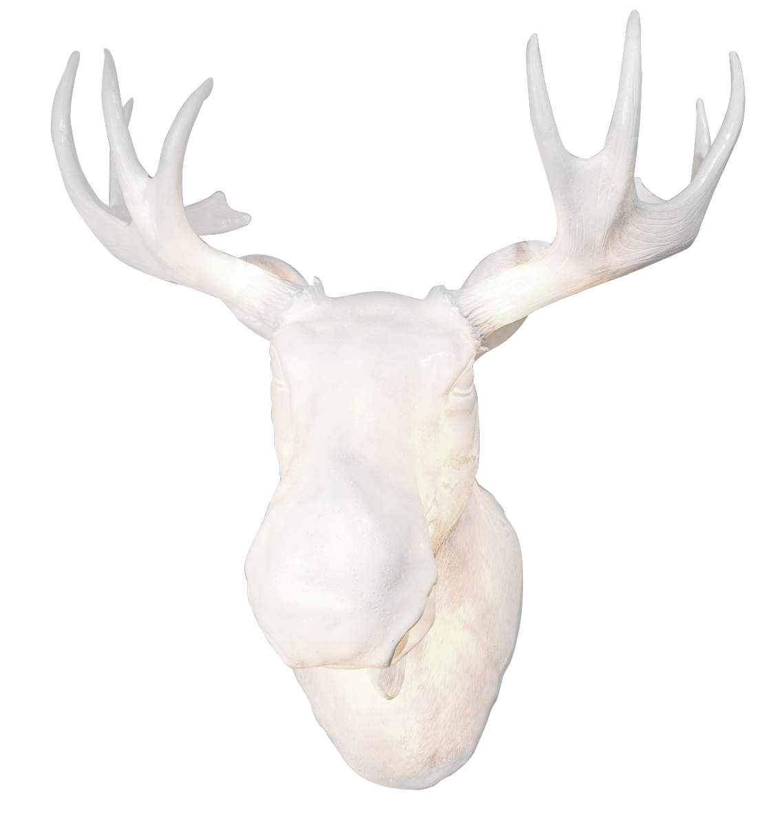 Mål: H: 75 cm B: 75 cm (gevir) B: 57 cm (hals)