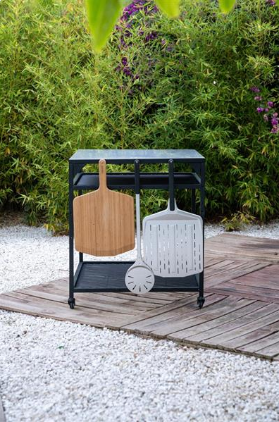 Bord speciellt anpassat för Ooni-spisar och tillbehör.