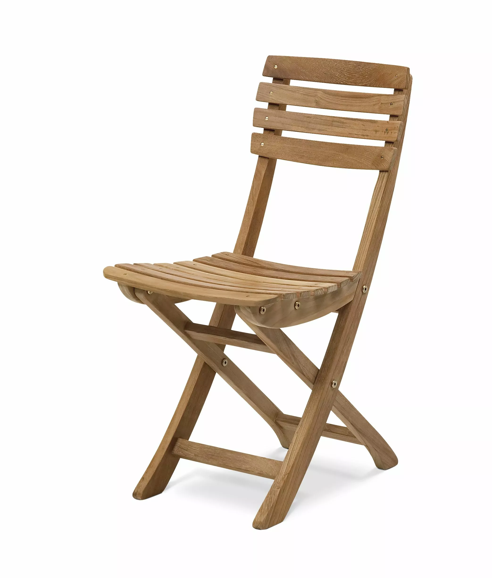 Bekvämt, smart och enkelt. Vendia stol är hopfällbar och relativt liten i sin form, vilket gör den till en perfekt match för balkonger, kök eller en grillfest på bakgården. Mässingsbeslagen kontrasterar fint med den honungsbruna teak och de böjda linjerna ger en elegans till det klassiska, nordiska utseendet.
