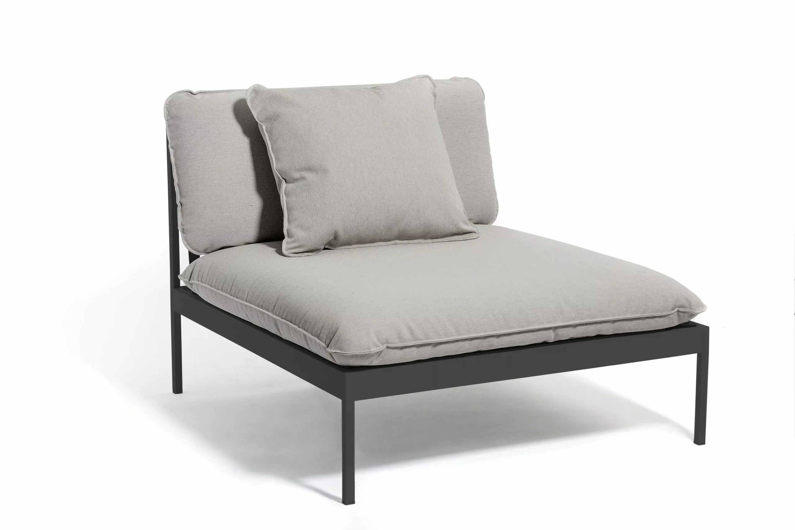 Ett smart modulärt soffsystem som kan användas året runt utomhus. Mycket mångsidig, mycket slitstark. Ramarna är gjorda av aluminium, kuddarna är gjorda av Sunbrella utomhustyger och fyllda med Quickdry-skum.