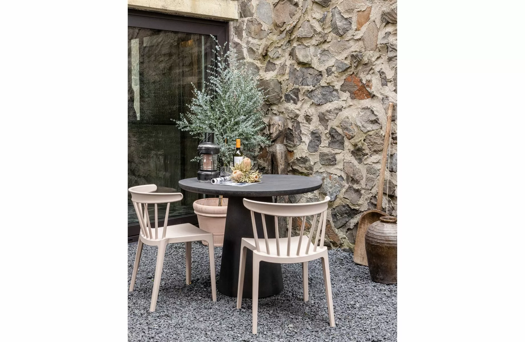 Dette robuste Damon-spisebordet er fra samlingen til det nederlandske merket WOOOD. Bordet er laget av fiberleire i betong-look med en varm brun finish. Praktisk; spisebordet egner seg for både innendørs og utendørs bruk.